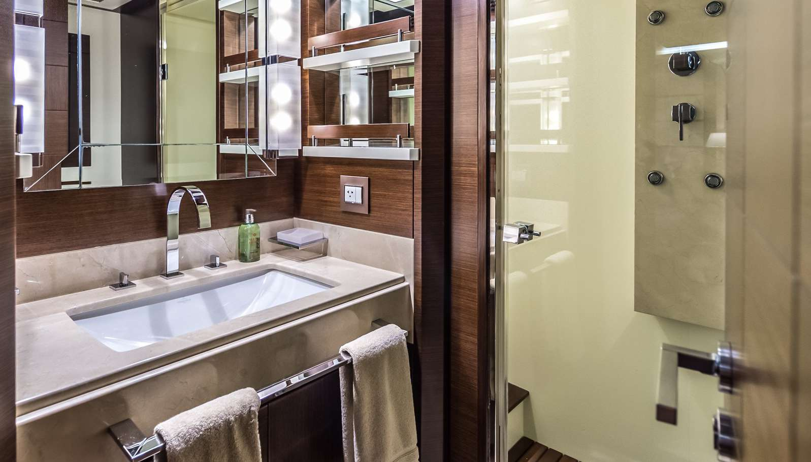 Two stairways join to the lower deck swim platform and another connects up to the fly bridge aft. Side walkways provide access to the foredeck, where there is a tipple sunbed on the bow for guests to savour the sunshine and ...