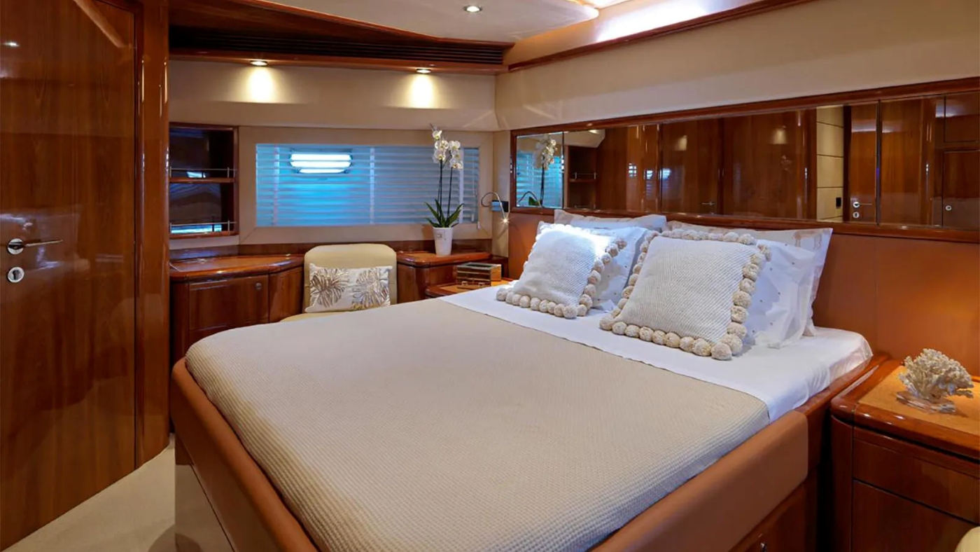 She was built by Ferretti in 2005 and refitted in 2020, offering comfortable, deluxe accommodation for up to 8 guests in 4 cabins, with a crew of 5 onboard.