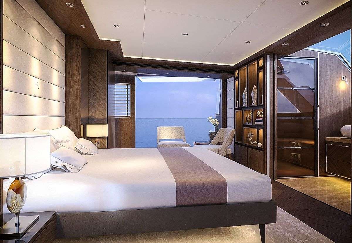 The lower deck layout places the guest accommodation forward and amidships with the crew ...