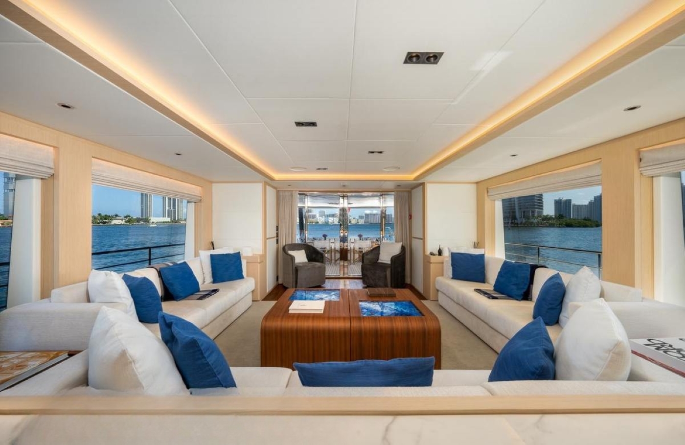 Tow stairways lead down to the lower deck swim platform and a starboard stairway connects to the flybridge aft.