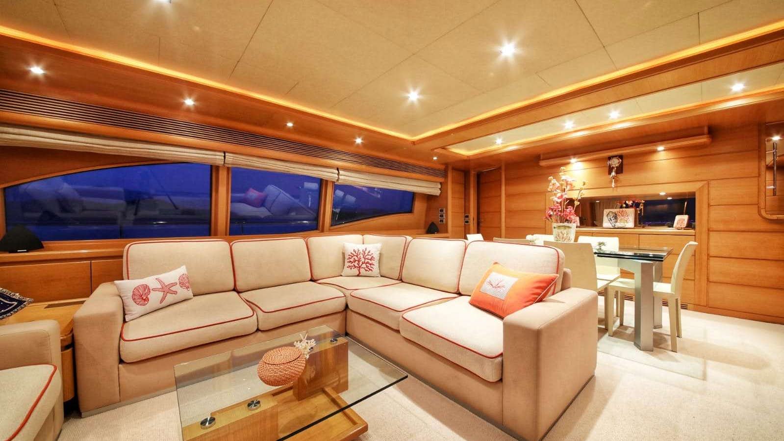 She measures 30.00m (98' 5") and was built by the Italian shipyard Ferretti in 2007, offering accommodation for up to 12 guests in 5 cabins, with additional cabins for a crew of 5. She was refitted in 2019.