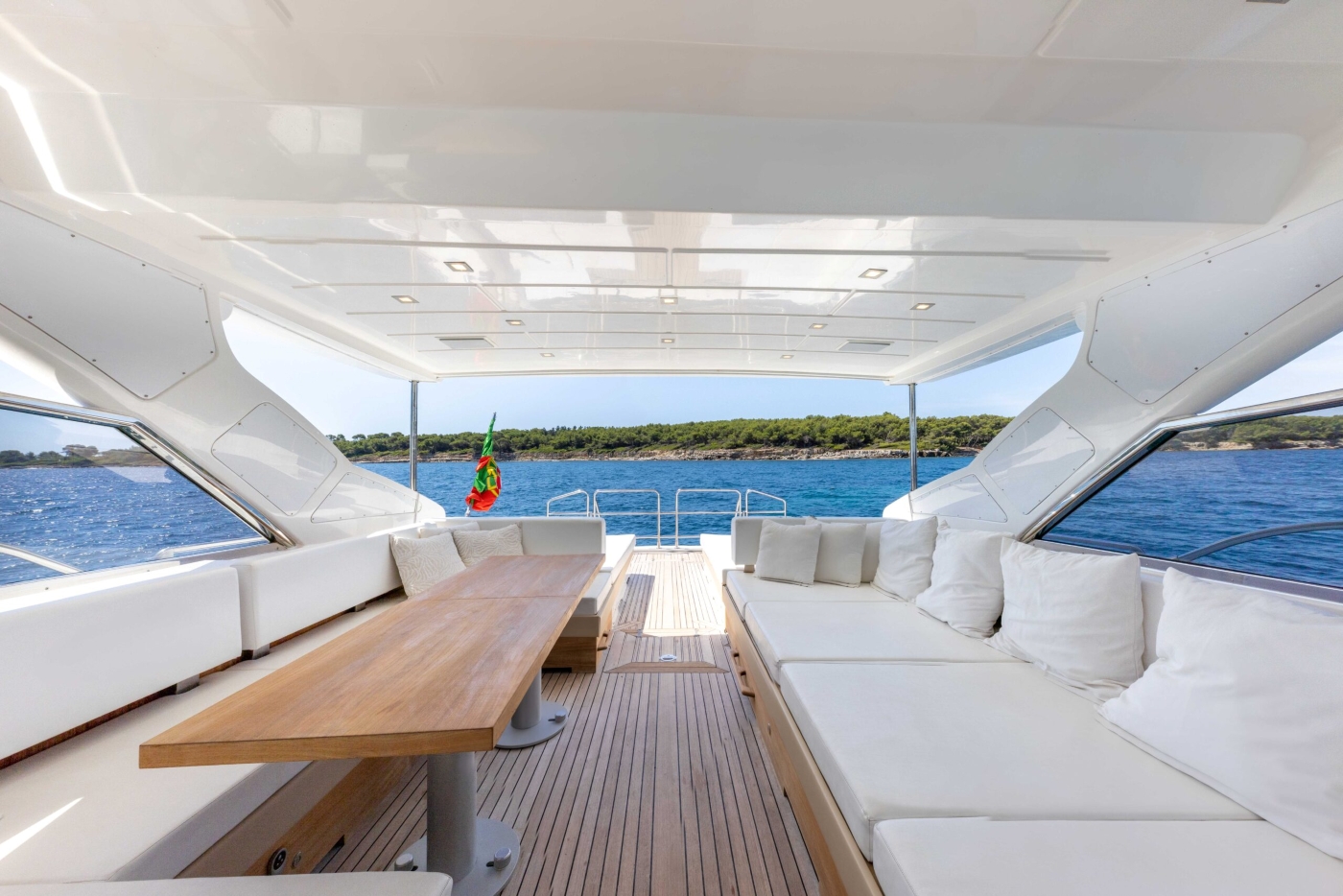 The main deck aft joins with the salon interior to create effortless indoor/outdoor flow.