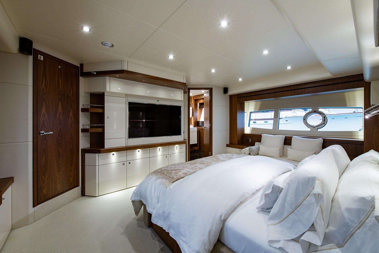 While up to 12 guests can remain on board while cruising, the accommodation sleeps up to 10 guests in 4 en-suite cabins: 1 Master suite, 1 VIP stateroom and 2 twin cabins that both have a Pullman berth.