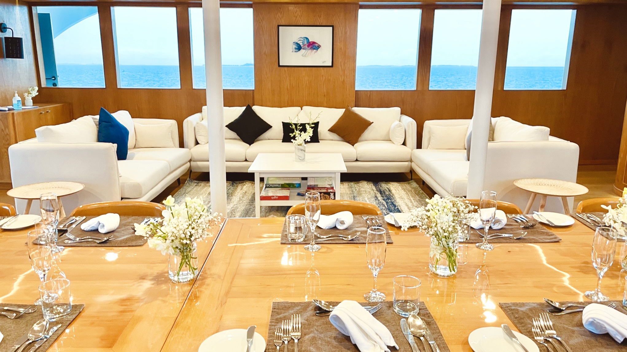 NOTABLE FEATURES OF SAFIRA: ~ Jacuzzi ~ Two bars ~ Several dining areas ~ Air-conditioning ~ Excellent diving & fishing experience