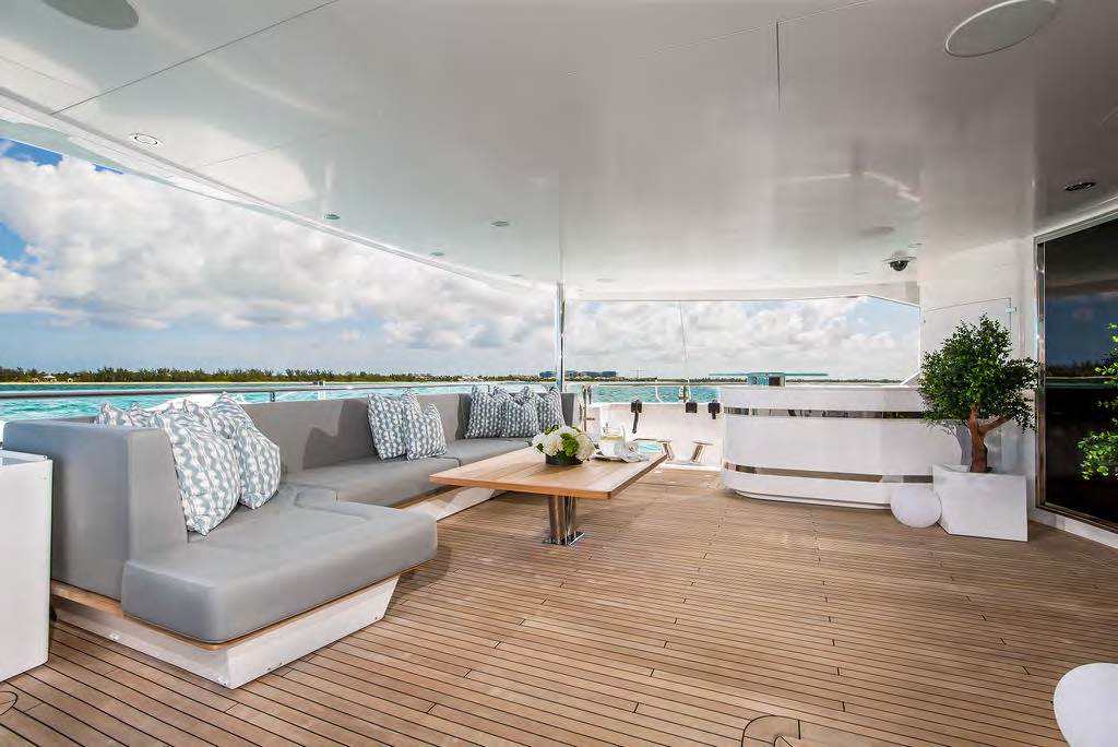 NOTABLE FEATURES OF CAPTAIN MORGAN III: ~Sundeck Jacuzzi ~Master suite with fold-down side terrace ~Skylounge and sundeck bars ~Well-proportioned guest cabins ~Top speed of 23 knots ~Range of 1,500 nautical miles ~Air ...