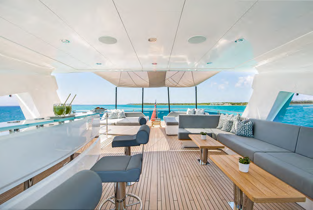 NOTABLE FEATURES OF CAPTAIN MORGAN III: ~Sundeck Jacuzzi ~Master suite with fold-down side terrace ~Skylounge and sundeck bars ~Well-proportioned guest cabins ~Top speed of 23 knots ~Range of 1,500 nautical miles ~Air ...