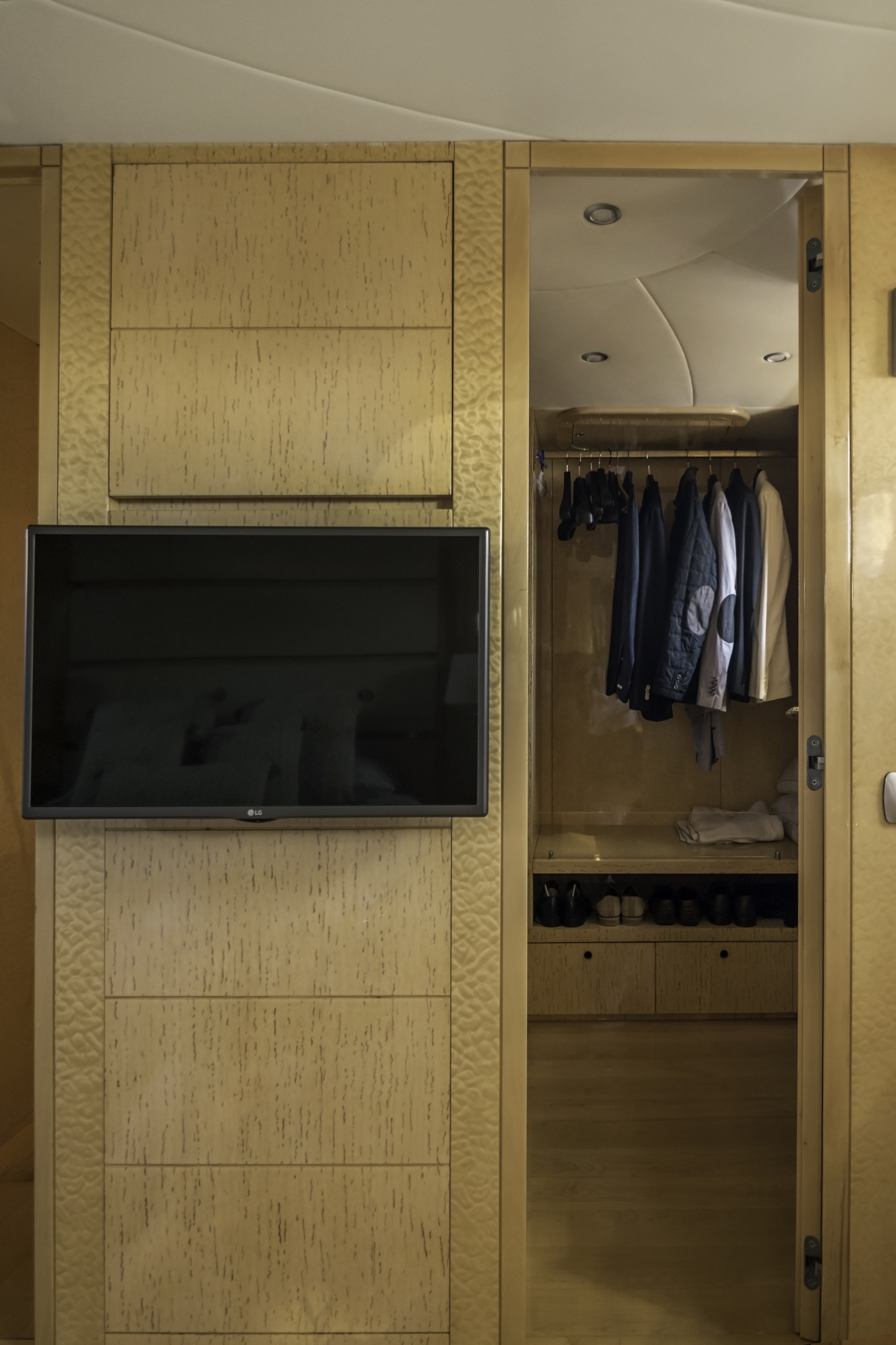 . In addition to two single beds there is a Pullman berth, a widescreen TV, ample storage and an en-suite bathroom providing a sink, toilet and shower.