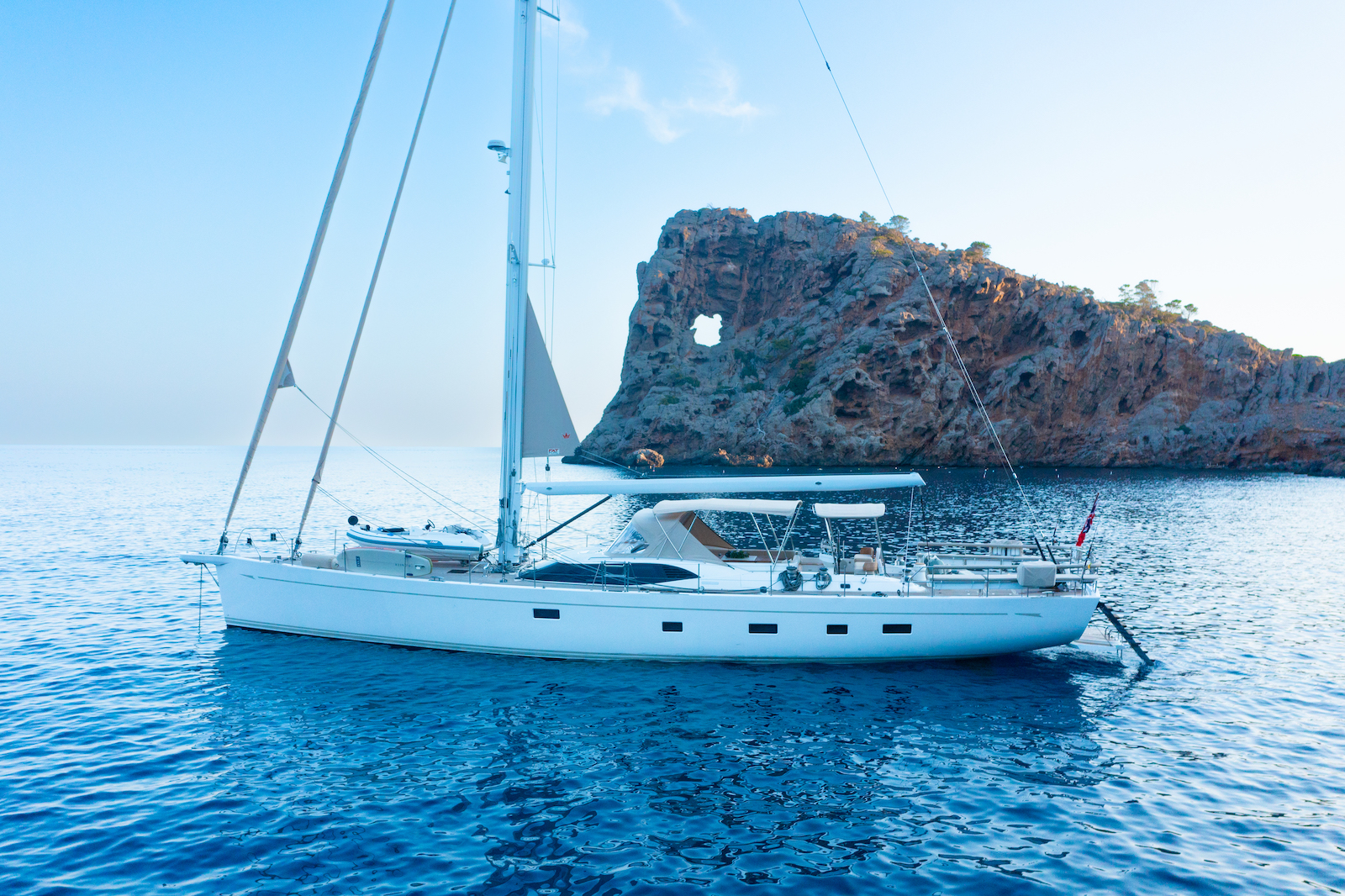 Sailing yacht CHAMPAGNE HIPPY was launched in 2014 and refitted in 2023, she is built by the renowned Oyster shipyard and can accommodate up to 8 guests, in 4 cabins.