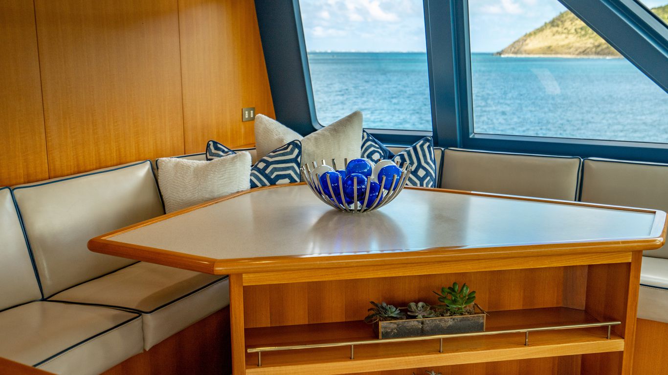 The accommodation sleeps a total of eight charter guests over five en-suite cabins, with a crew of five to ensure that everyone on board is well taken care of.