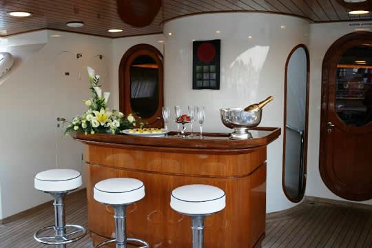 Undergoing extensive refit at Perini Navi Viareggio Winter 2006/7 to "better than new" condition with new teak decks, topside and superstructure paint, new sails, extended fly bridge/large Spa Pool and sun cushions, barbecue and new aft swim platform.