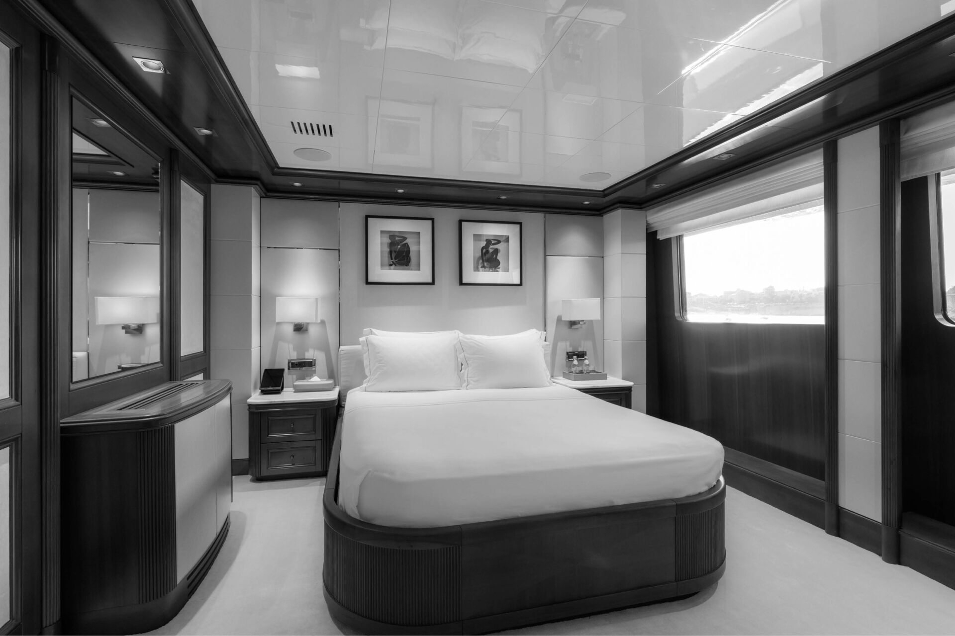 The accommodation is made up of Royal Master Suite, an Executive Stateroom, two VIP suites, five double staterooms and five twin staterooms, set to the highest standards.
