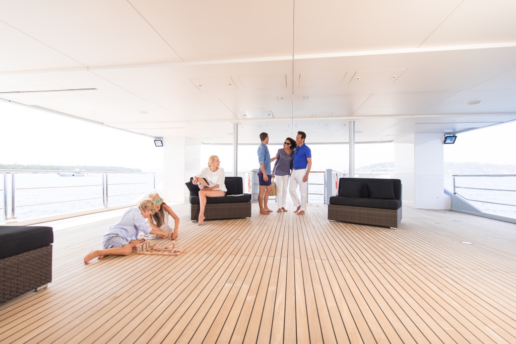 She comes with Quantum Zero speed stabilizers, for at anchor comfort, a Helipad up to EC 135, a deck Spa Pool, and a Teppanyaki grill on her upper deck.