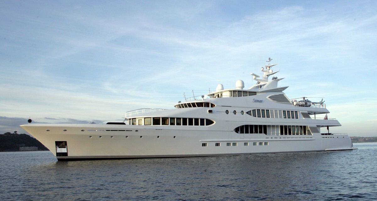 M/Y SAMAR is a 77m (252 foot) steel-and-aluminum Laurent Giles designed luxury motor yacht with studio and interior styling by Joe Thome. She was built and launched by Devonport Yachts of England in 2006.