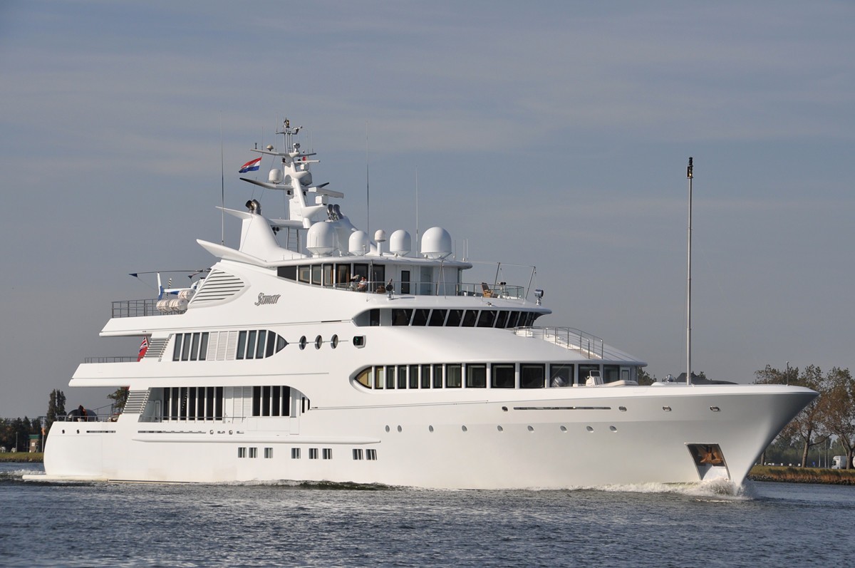 She was built and launched by Devonport Yachts of England in 2006. At an impressive 77 meters in length, motor yacht Samar is, so far, one of the largest yachts by volume or tonnage (2150 gross tonnes) to have been built in the UK to date.