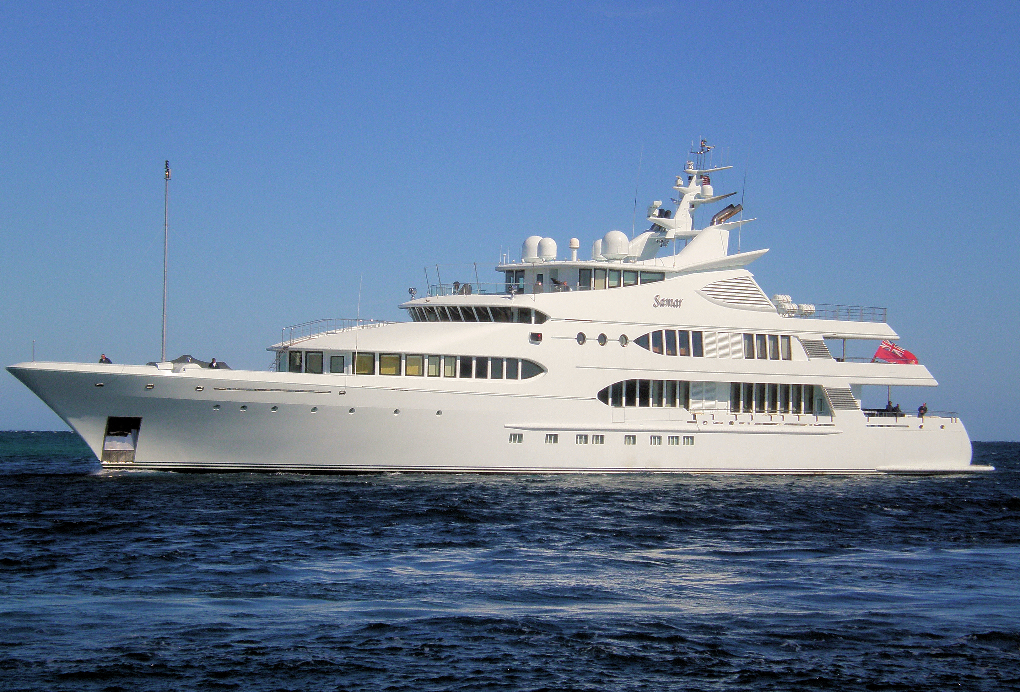 M/Y SAMAR is a 77m (252 foot) steel-and-aluminum Laurent Giles designed luxury motor yacht with studio and interior styling by Joe Thome. She was built and launched by Devonport Yachts of England in 2006.