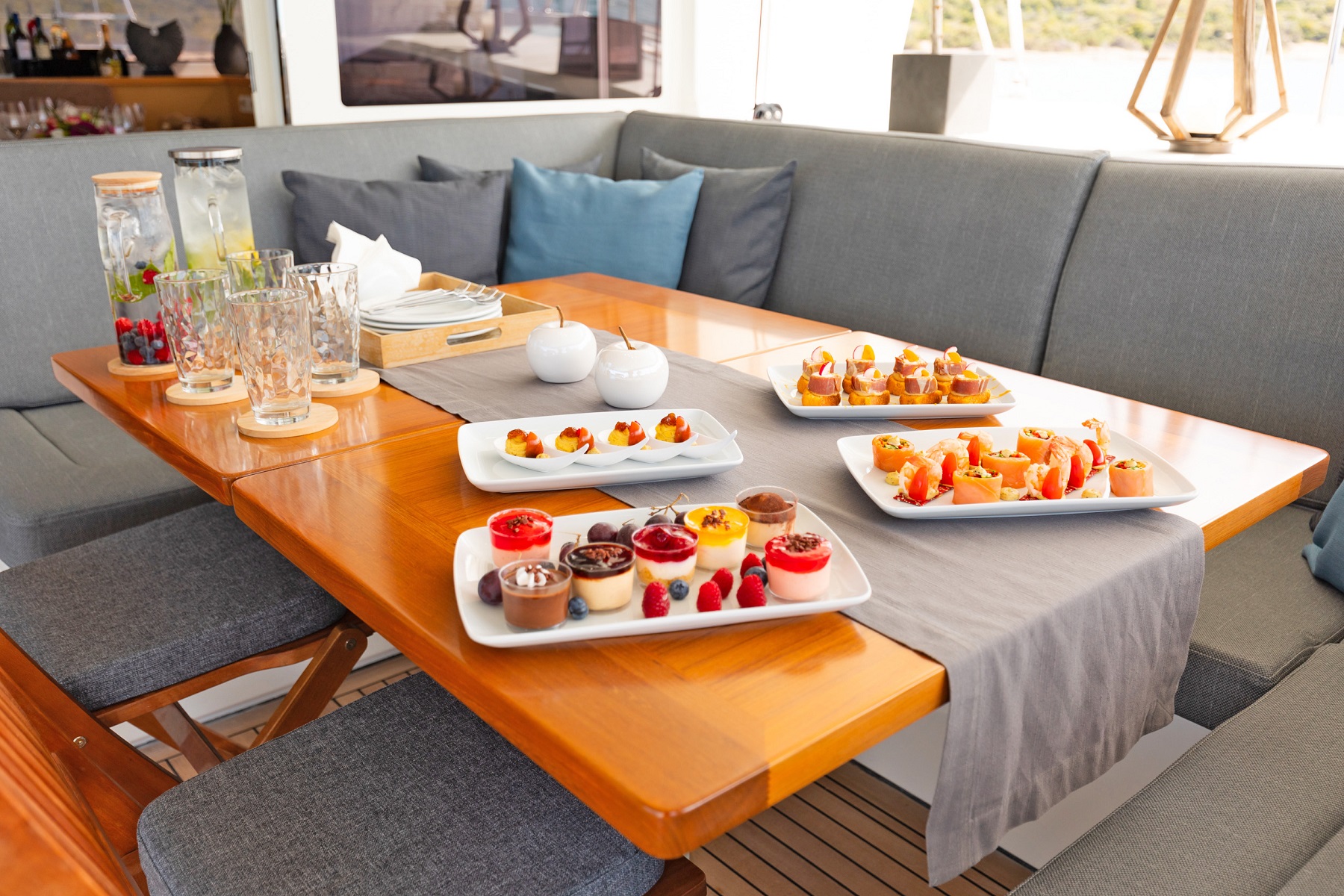 A Lagoon 560 catamaran, MELITI offers exceptional space thanks to her wide beam and great layout. She has an open-plan dining and saloon area, with an adjacent galley.