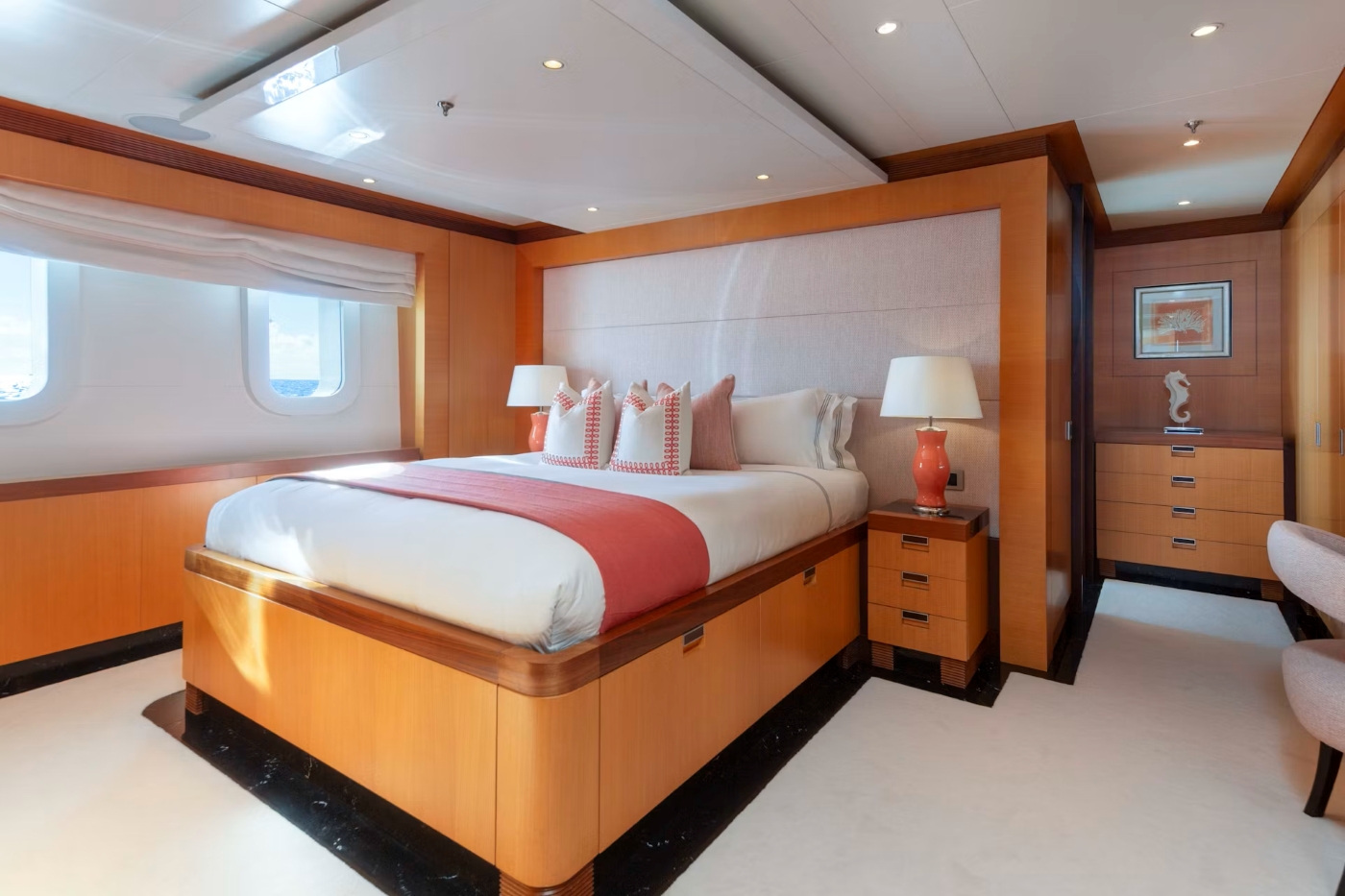 M/Y LA BLANCA offers accommodation for up to 12 guests in 6 staterooms including a Master suite, a VIP cabin, 2 double guest cabins and 2 twin cabins. There is also a massage room on the bridge deck that offers full and half body massages, facials and reflexology treatments at no charge.