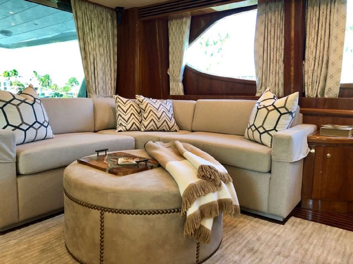 To starboard, a stairway leads down to the forward guest accommodation. Amidships to port is the galley with bar seating, and to starboard is the day head and stairway to the raised pilothouse. The aft section places a curved ...