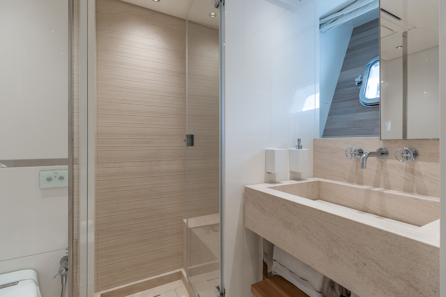 ~ The VIP stateroom forward comes with a queen-sized bed with a widescreen TV opposite, plenty of storage, plus an en-suite bathroom with a sink, toilet and ...