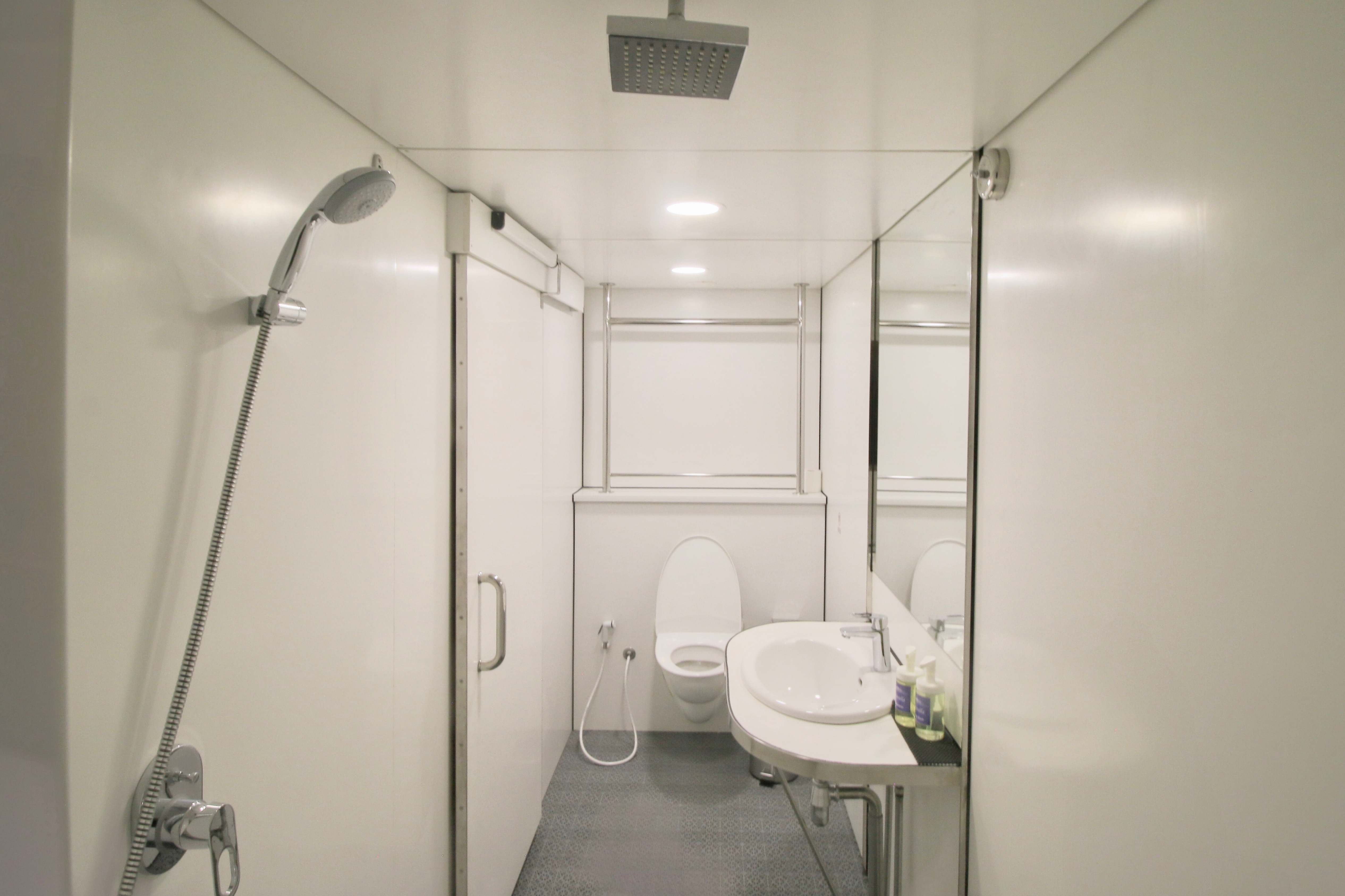 ~ The 3 deluxe suites on the upper deck measure 16m2/172ft2 and each have a king-sized bed, sofa, flat-screen TV, closet, mirror and mini bar. The en-suite bathroom has a sink, toilet and shower.