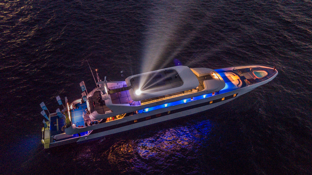 The most notable is the foredeck, where there is an abundance of sunbeds, sofa-seating and a forward saltwater pool. The top deck is laid out with sun loungers for up to seven guests to enjoy uninterrupted sunshine.