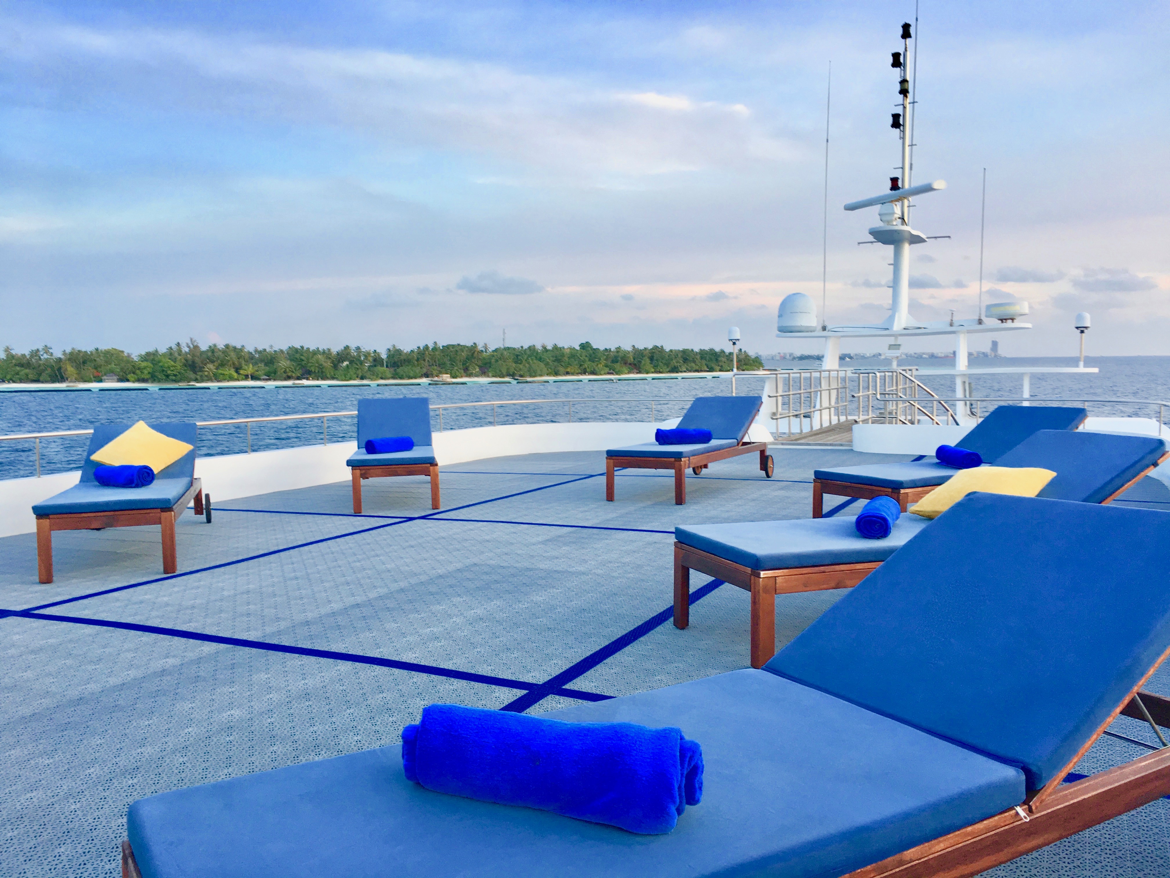 ~ The 4 deluxe rooms on the top deck measure 11m2/118.4ft2 and each come with their own balcony. Each cabin has a king-sized bed, flat-screen TV, mini bar, closet and mirror.