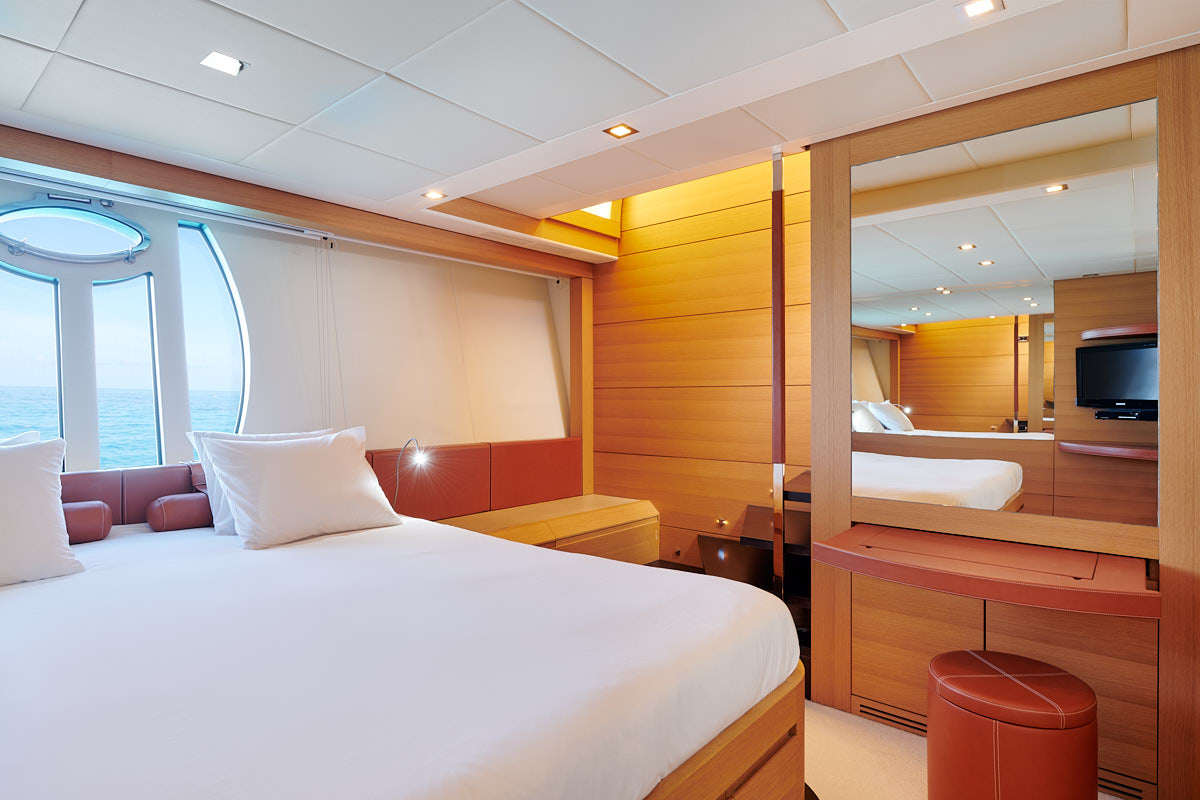 She was launched by the renowned Pershing shipyard in 2009 and offers accommodation for up to 8 guests in 4 cabins, with additional accommodation for a crew of 3.