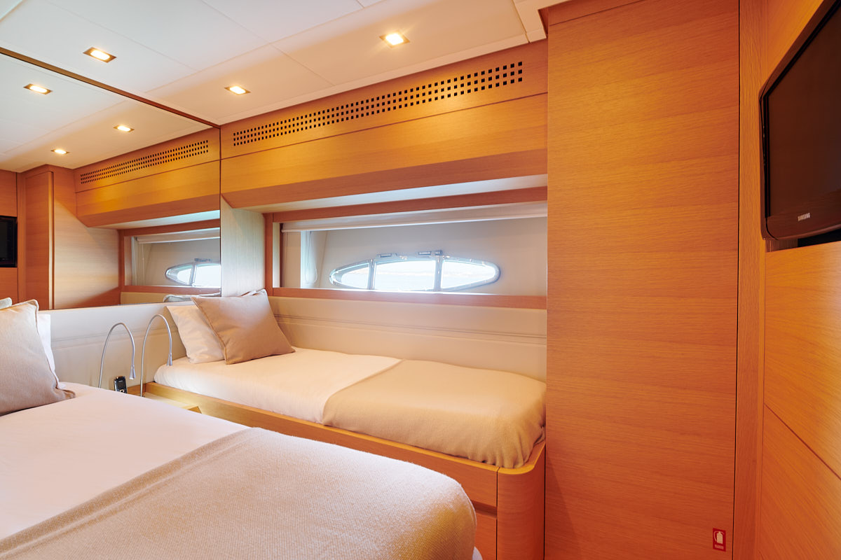 She was launched by the renowned Pershing shipyard in 2009 and offers accommodation for up to 8 guests in 4 cabins, with additional accommodation for a crew of 3.