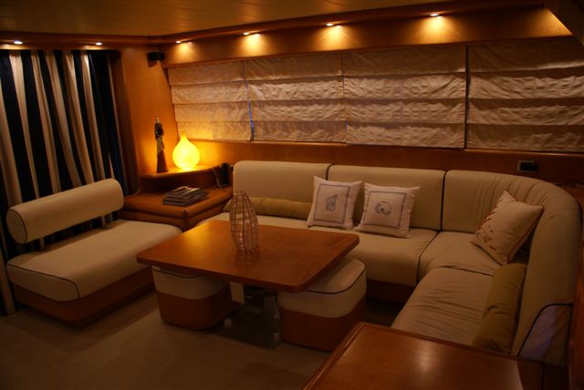 This yacht has a spacious saloon and has a TV/DVD in the saloon as well as in each stateroom. There is a sound system on the aft deck and the fly bridge. Three staterooms - the master and VIP have king size walk around berths which are both almost equal in size.
