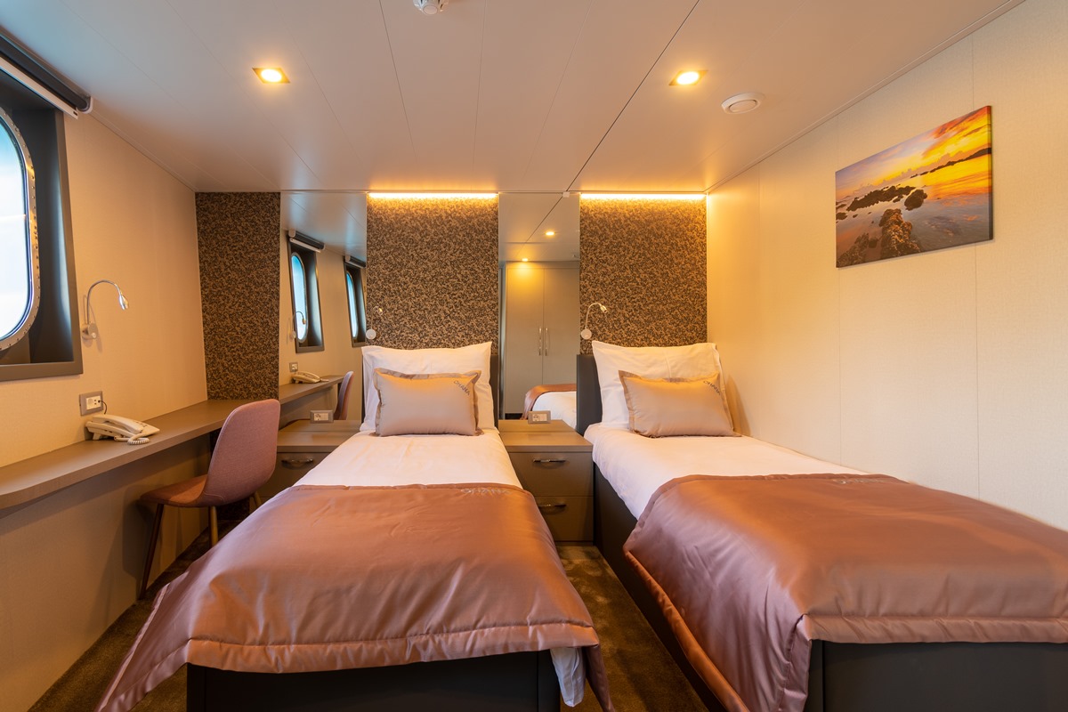 She was custom-built in 2021 and offers large on deck spaces with elegant and welcoming decor and deluxe accommodation in 14 cabins for up to 30 guests. A professional and highly skilled crew of 8 offers exceptional service at all times.