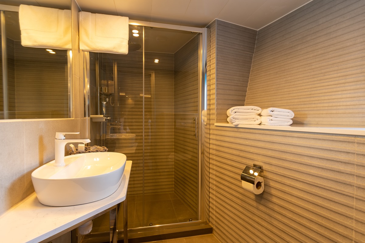 She was custom-built in 2021 and offers large on deck spaces with elegant and welcoming decor and deluxe accommodation in 14 cabins for up to 30 guests. A professional and highly skilled crew of 8 offers exceptional service at all times.