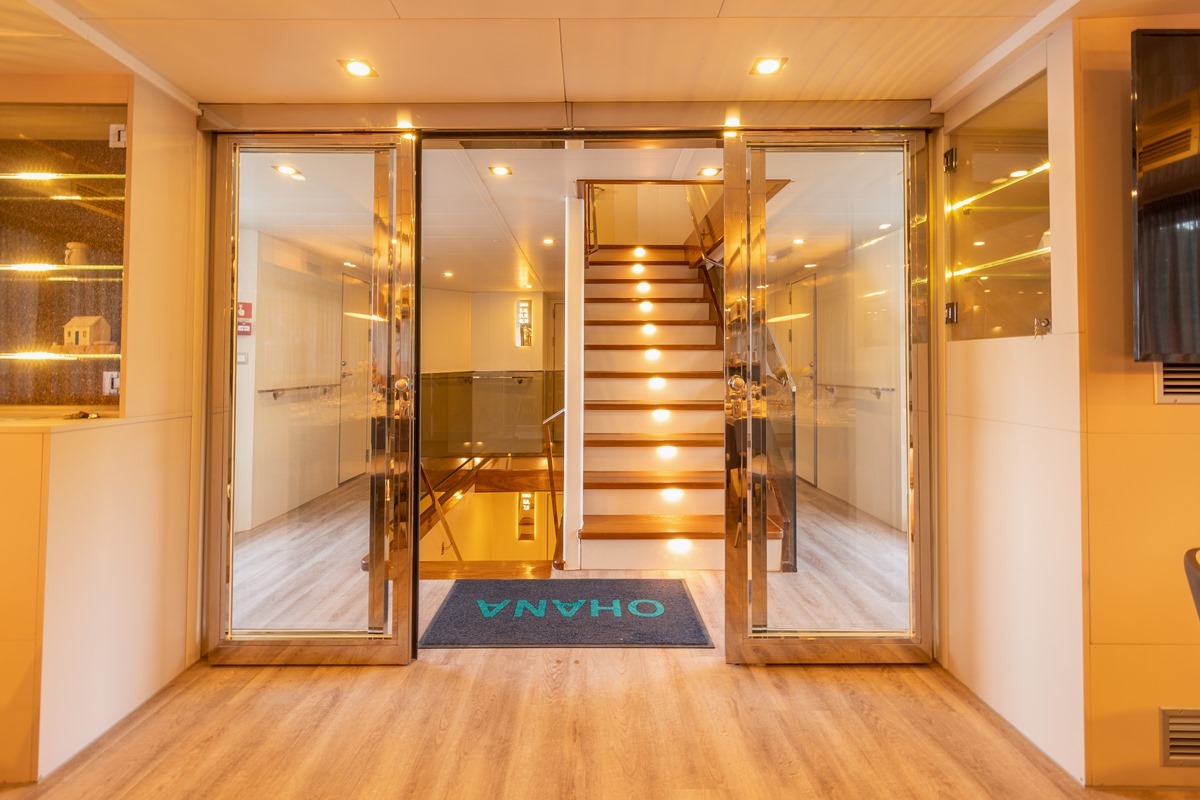 Motor yacht OHANA measures 48,5m and is an excellent option for a larger group of guests seeking luxury charter vacations in Croatia. She was custom-built in 2021 and offers large on deck spaces with elegant and welcoming decor and deluxe accommodation in 14 cabins for up to 30 guests.