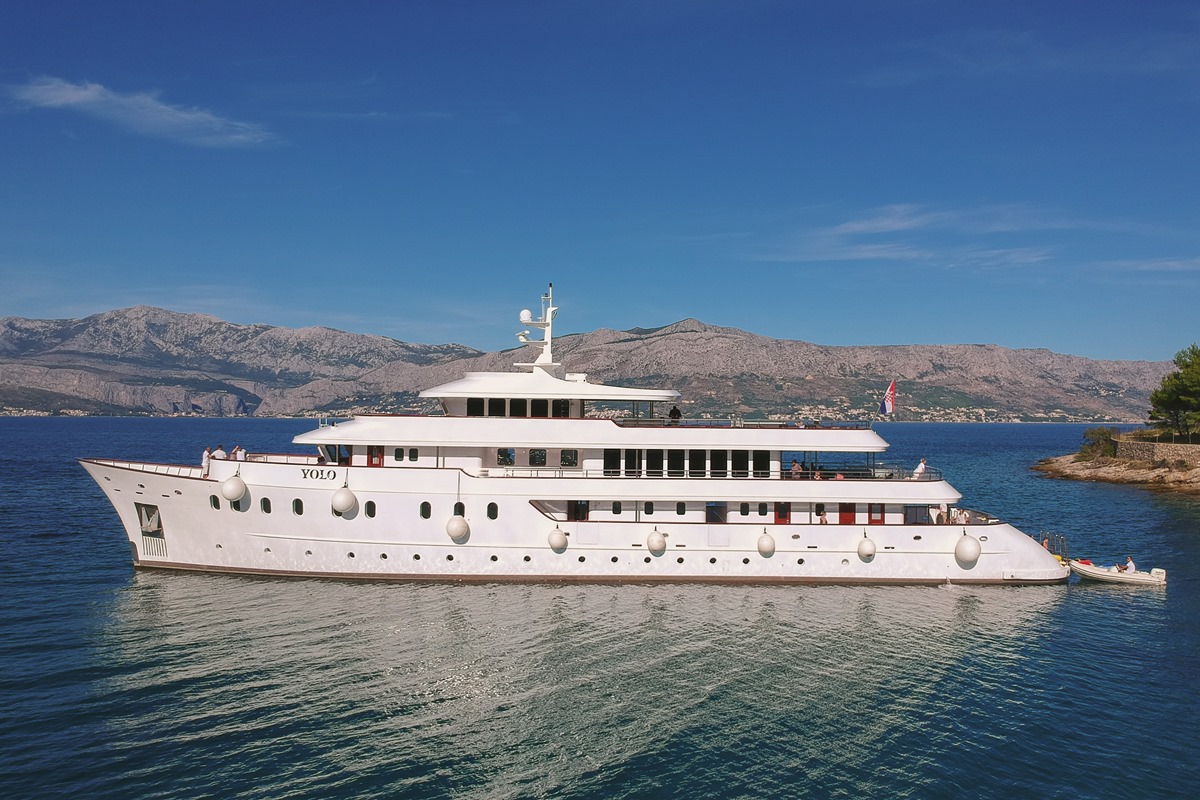 Motor yacht YOLO is beautiful luxury vessel available for charter in Croatia for a larger group of guests that are looking for deluxe charter vacations. She was custom built in 2019 and offers large on deck spaces with elegant and welcoming decor and deluxe accommodation in 17 cabins for up to 36 guests.