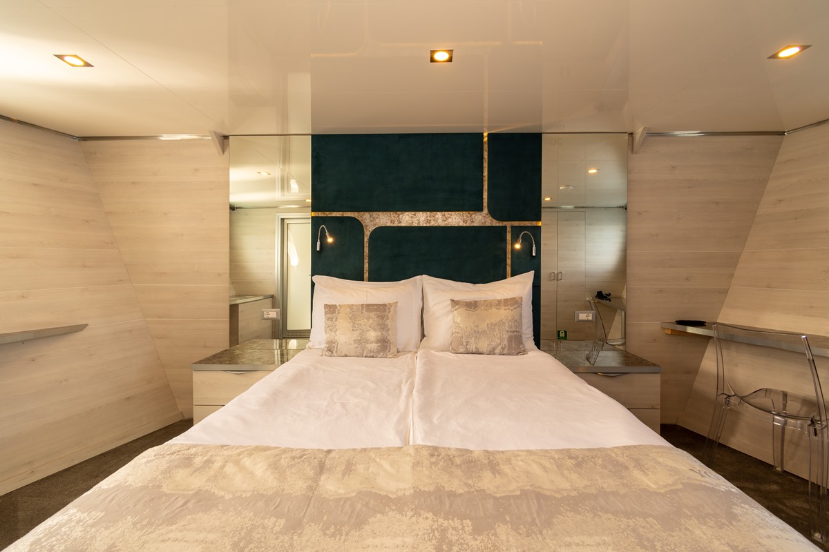 She was custom built in 2019 and offers large on deck spaces with elegant and welcoming decor and deluxe accommodation in 17 cabins for up to 36 guests. A friendly and skilled crew of 10 members provides excellent service at all times.