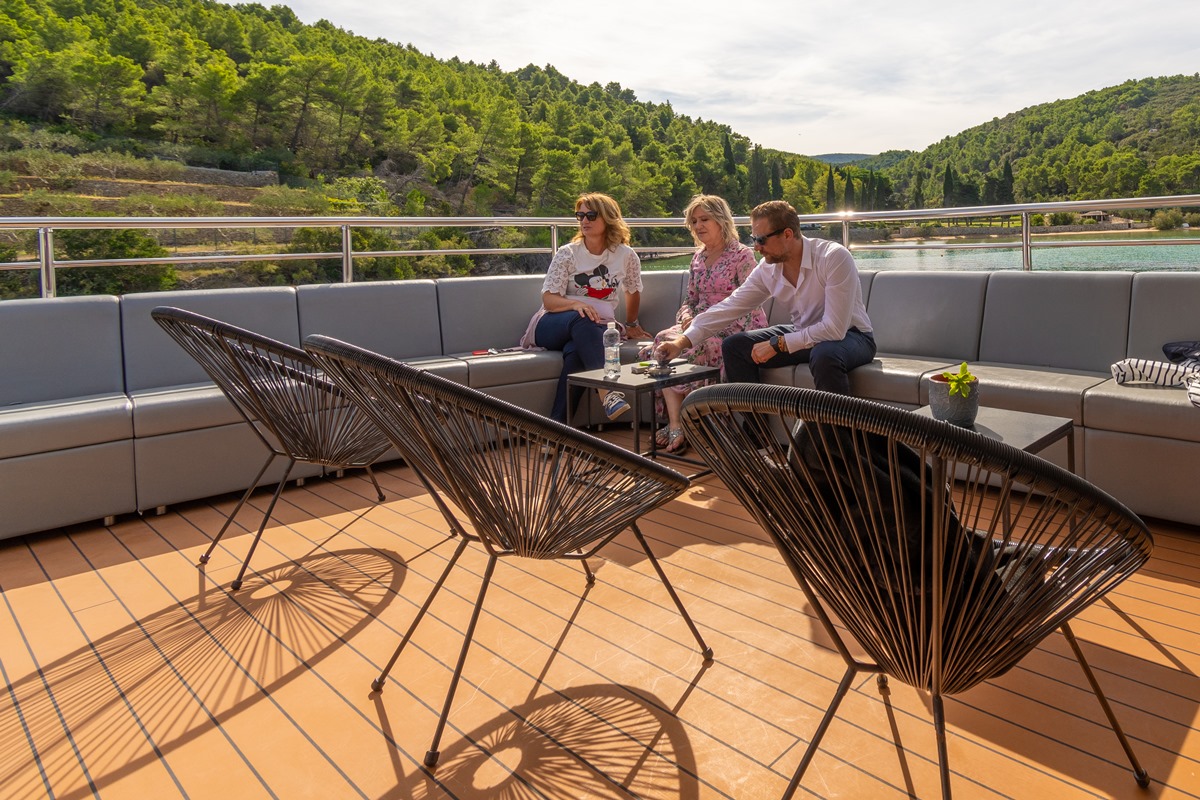 The main deck aft provides a comfortable sofa along the stern for guests to rest in the fresh air and enjoy the sunshine.