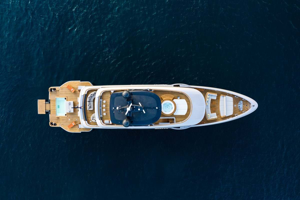 NOTABLE FEATURES OF 41M LUXURY SUPERYACHT: ~Sundeck Jacuzzi ~Main deck aft infinity pool ~Abundance of sunbathing ...
