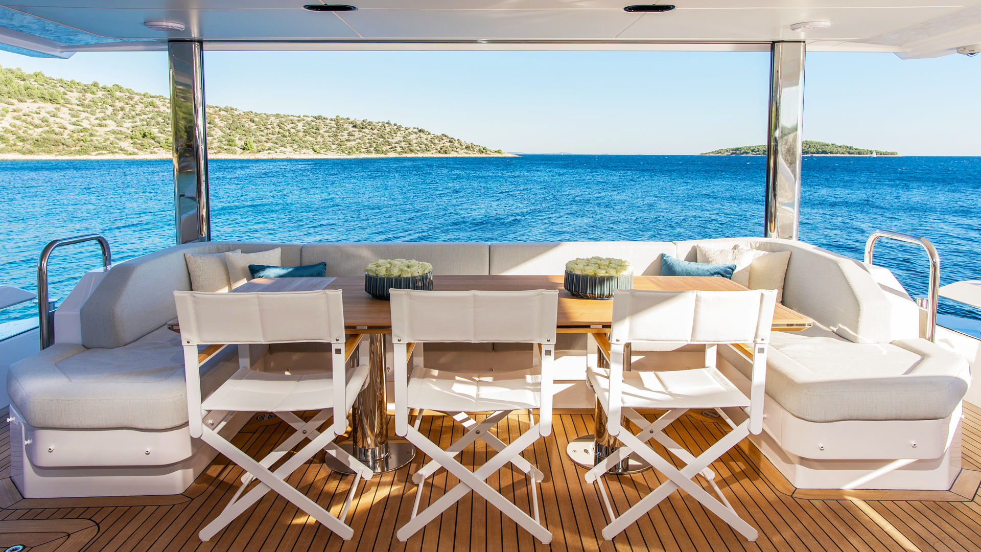 NOTABLE FEATURES OF DAWO: ~Beautiful contemporary interiors ~Flybridge wet bar ~Spacious guest cabins ~Great selection of water toys ~Maximum speed of 28 knots ~Draft of just 1.9m/6.4ft for close beach access ~Air conditioning ...