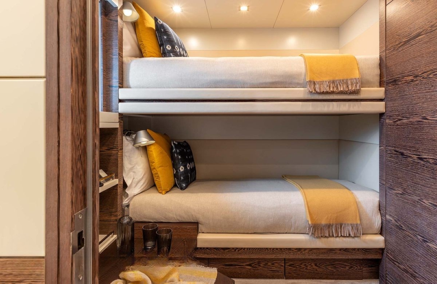 Refitted in 2021, she is a beautiful, fast and inviting motor yacht with a modern interior that can accommodate up to 10 guests in 5 cabins. There is further accommodation for the crew on board.