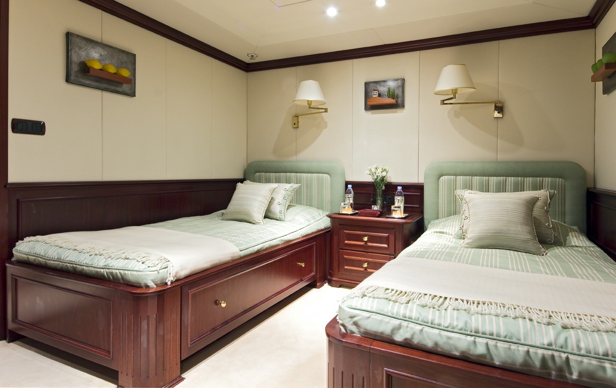 The yacht can accommodate 12 guests in 6 cabins with 4 Double and 2 Twin beds. Being quite large at 51.25m (168' ft) in length and having been refitted in 2010 she offers very good value.