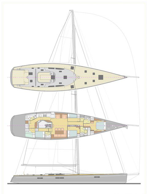 the helm controls are behind, and the foredeck offers plenty of space for sunbathing, exercise and observation while at anchor.