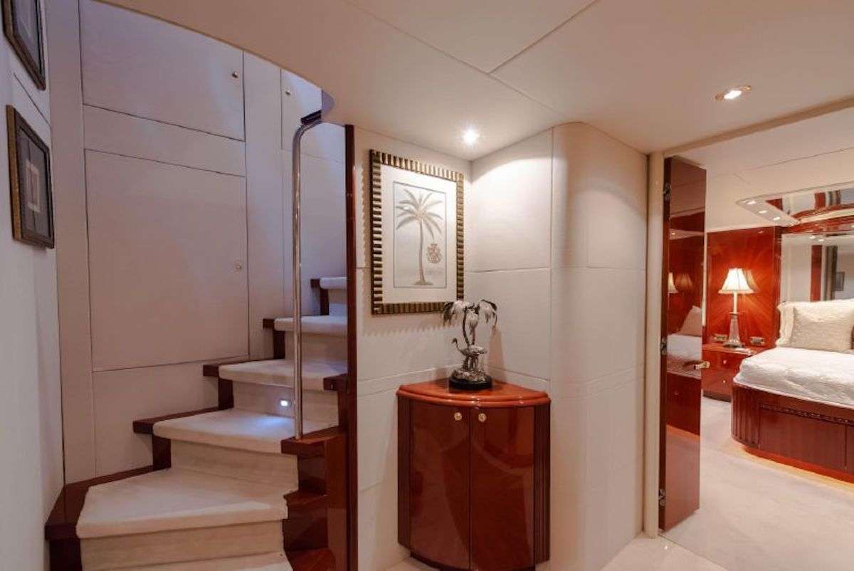 Motor yacht COPAY measures 24.38m (80') and was built by Lazzara in 2003 and refitted in 2020. She can accommodate up to 6 charter guests in 3 cabins, with additional accommodation for up to a crew of 3.