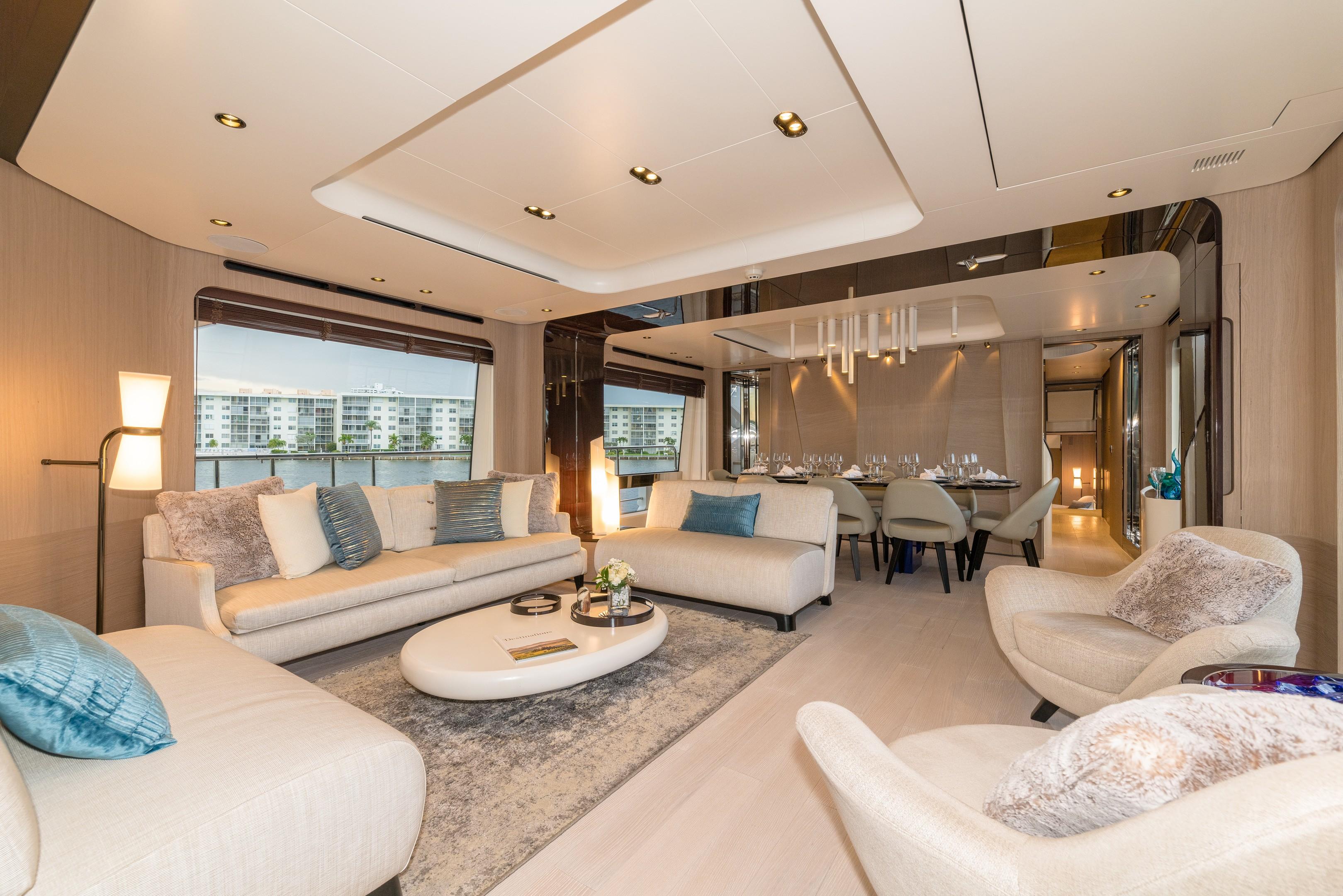The amidships section is covered but can be opened at the touch of a button, letting the sunshine touch diners at the C-shaped sofa to port, or the bar to starboard. The large circular Jacuzzi along the stern is the perfect place ...