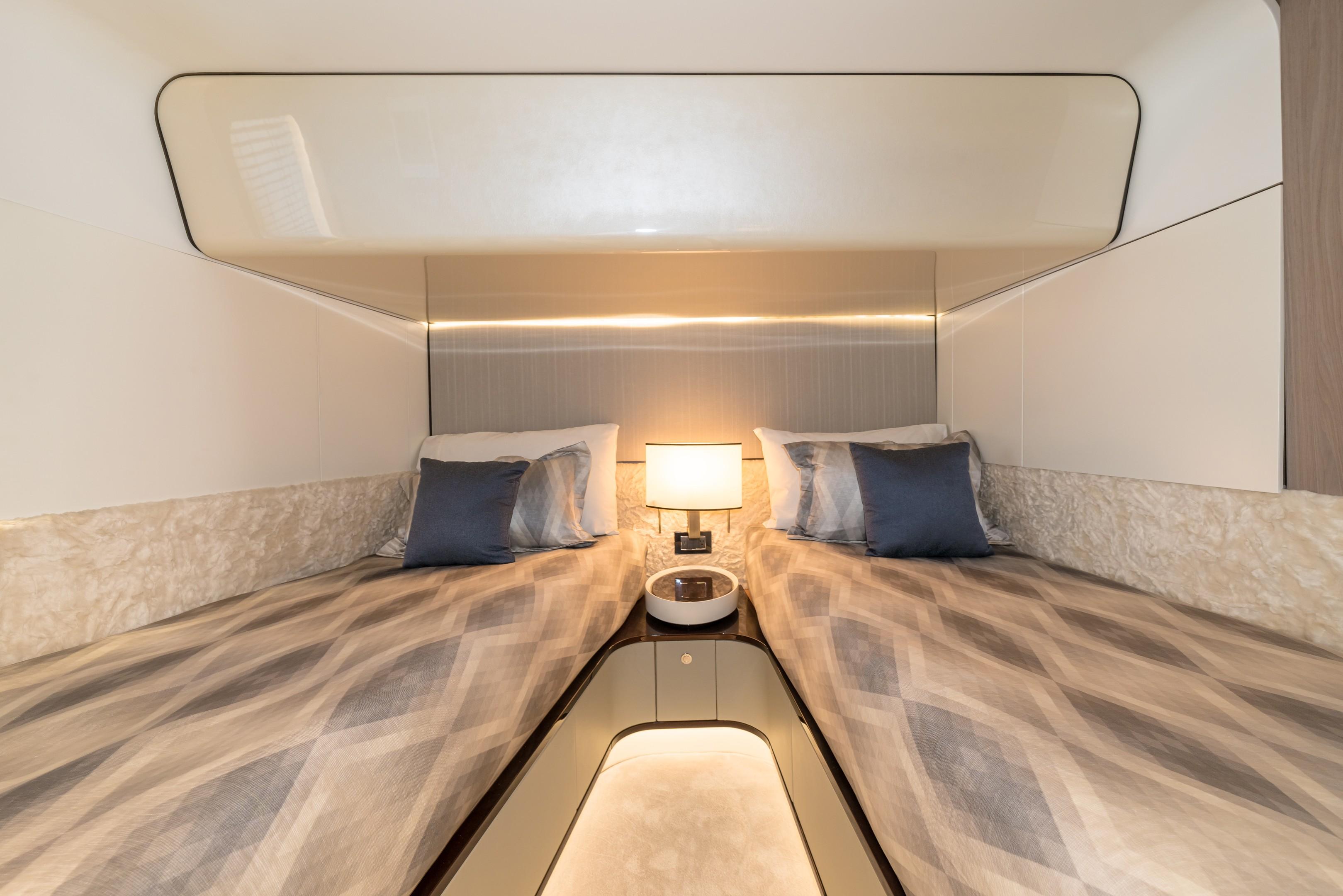 Her modern interiors were designed by Achille Salvagni Architetti, with accommodation that spreads over 5 cabins for up to 10 guests and additional cabins for a crew of 4.