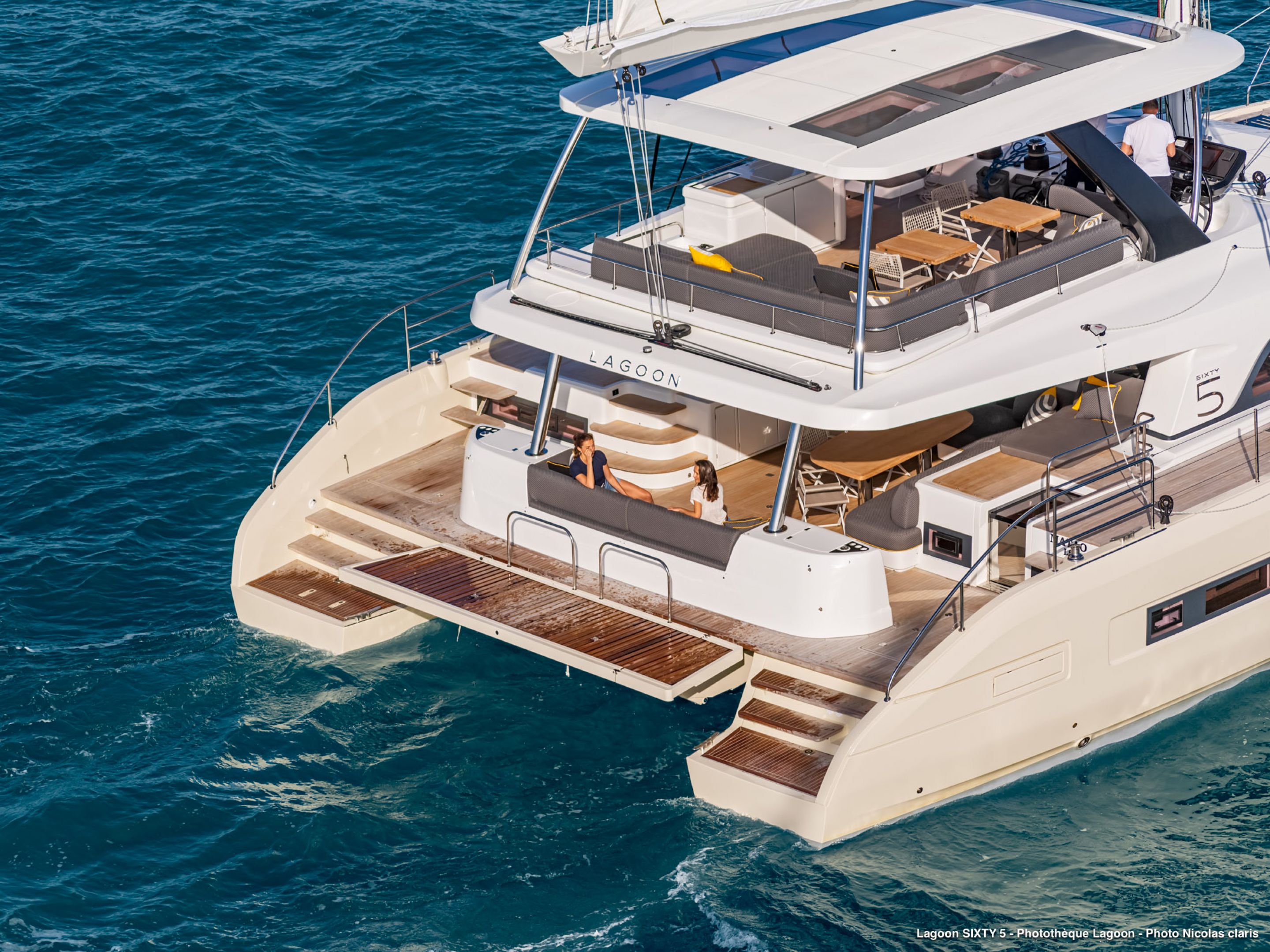 NOTABLE FEATURES OF AMADA MIA: ~Light and airy contemporary styling ~Abundance of sunbathing options ~Two alfresco dining areas ~Spacious guest accommodation ~Great collection of water toys ~Shallow draft of 1.5m/5.1ft for close ...