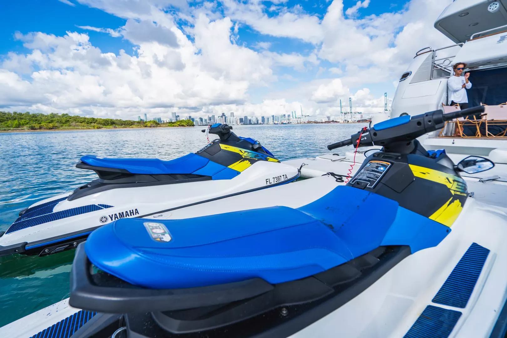 The Spa pool is situated on the flybridge, and ample sunbeds will appeal to guests, as will the swimming platform, from where the tenders and the jet skis are available at anchor. There is aft seating with cocktail tables and ...