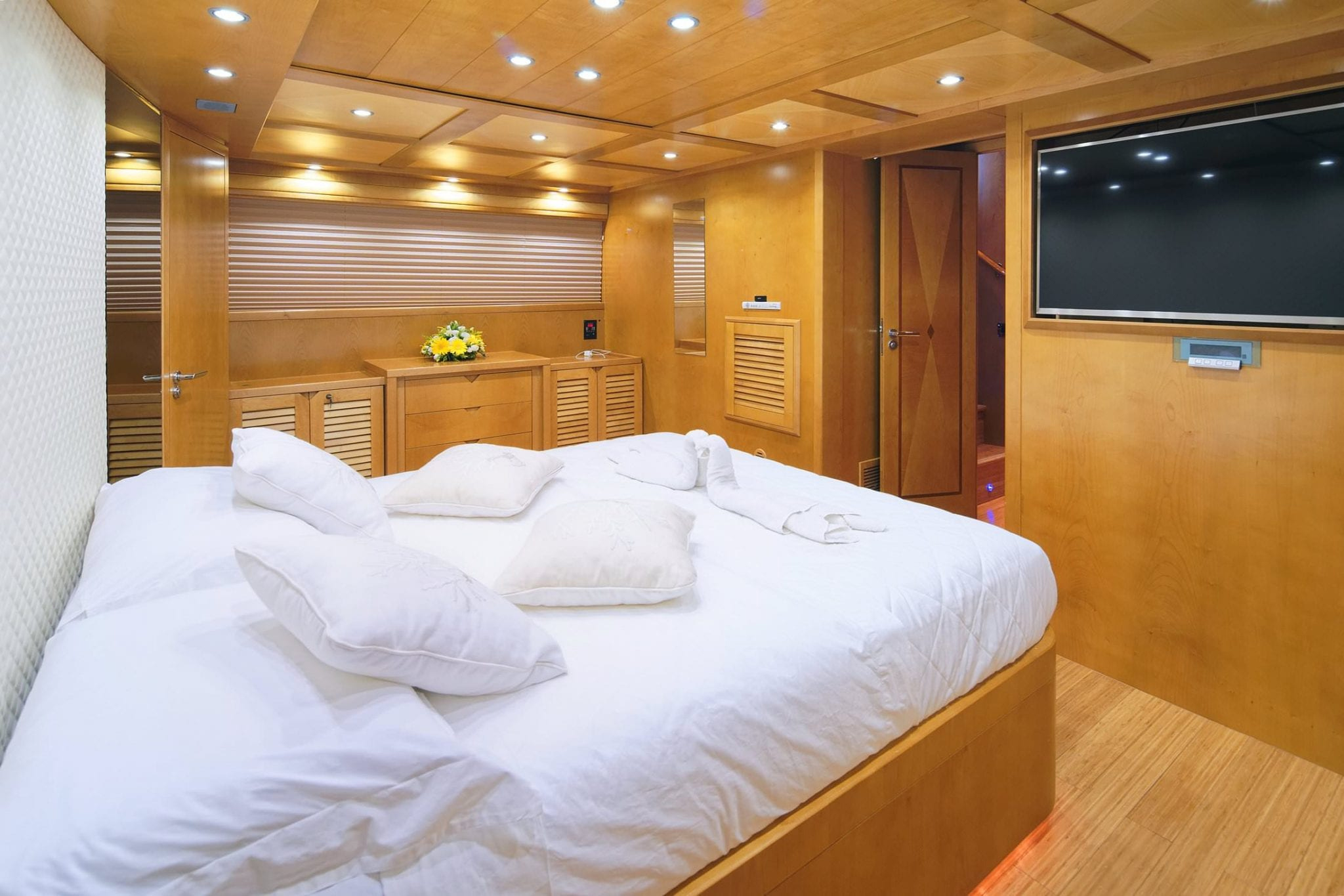 She was built in 2000 and underwent a complete refit in 2017, including new interior and exterior upholstery and renovated technical equipment. She features a beautiful flybridge sundeck and spacious main living salon.