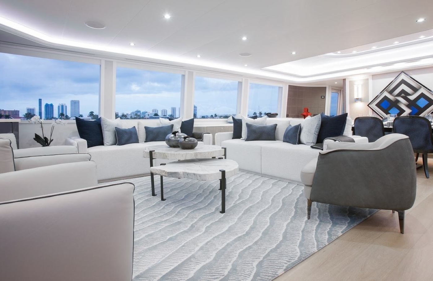 The area amidships and aft on the main deck consists of the formal dining area and salon respectively, combined into one large social area.