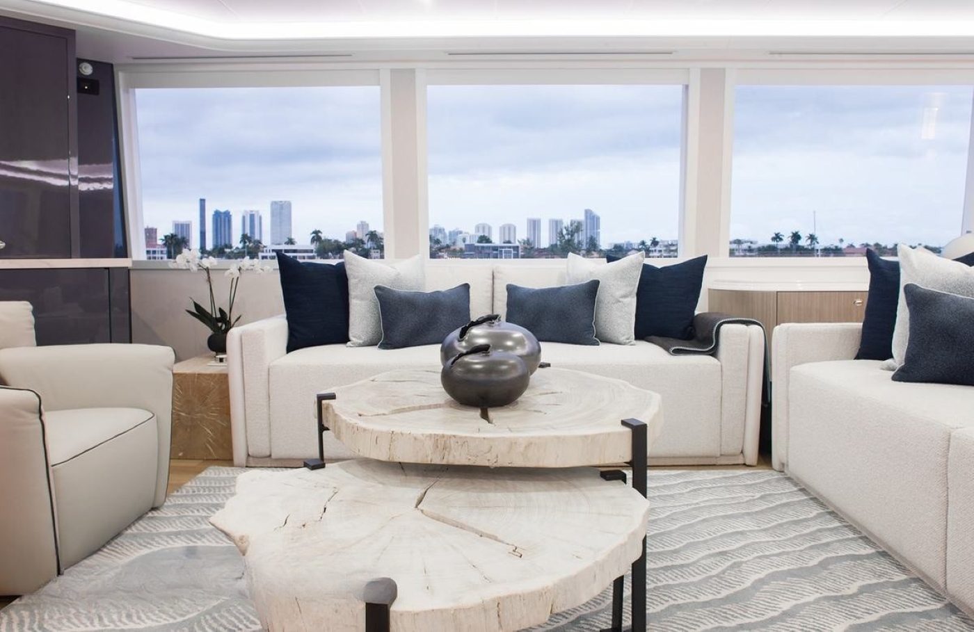 The area amidships and aft on the main deck consists of the formal dining area and salon respectively, combined into one large social area.