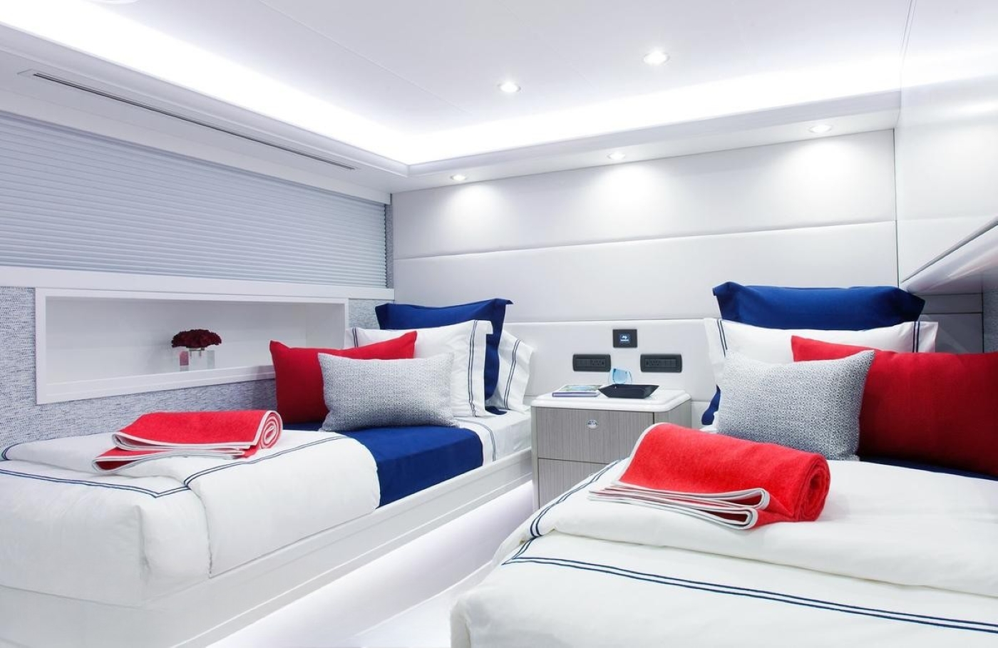 Her interiors by Destry Darr offer modern and stylish design, accommodating up to 9 guests in 4 ensuite cabins. A crew of 5 is there to offer professional and friendly service at all times.