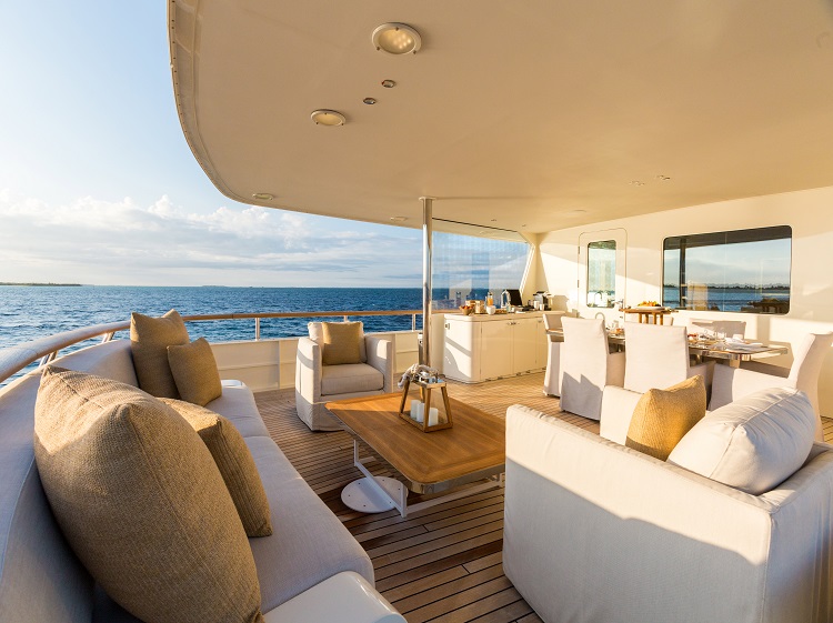 During the refit, a complete new air-conditioning plant was placed in the engine room, all fan coil units were serviced and modified with mufflers in the fresh air system, new zero speed stabilizers were mounted, and the teak decks were wholly overhauled and 100% newly caulked.